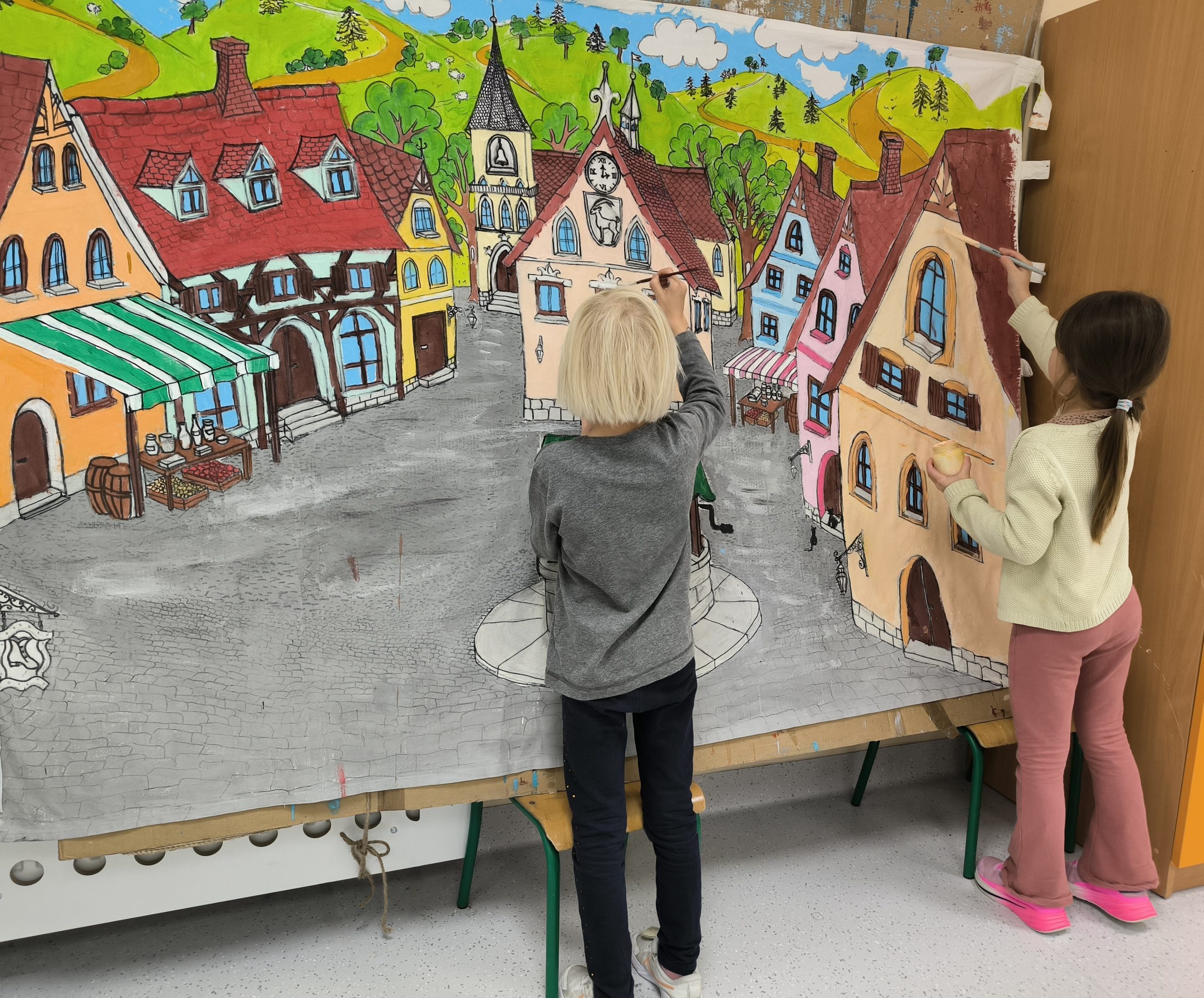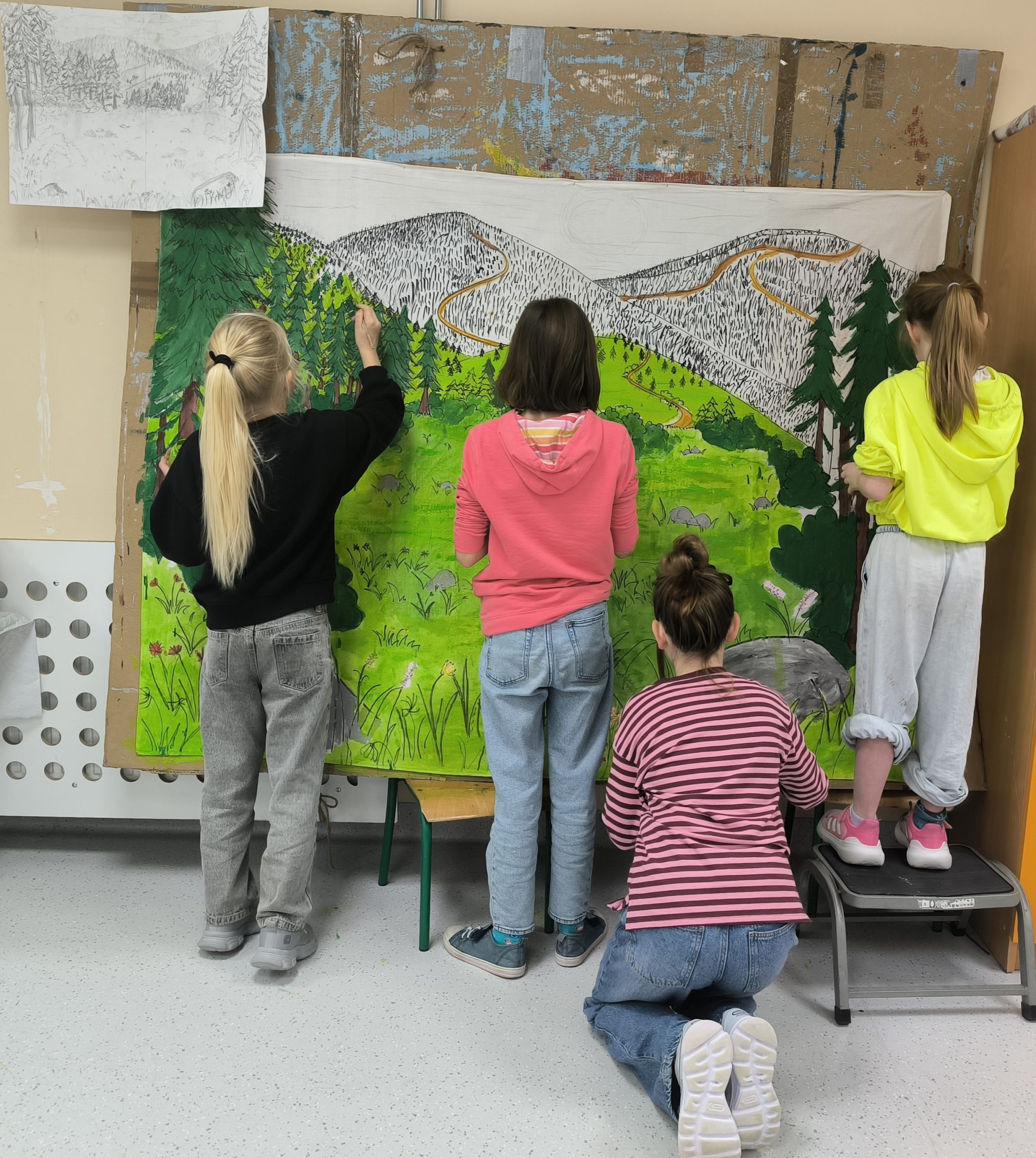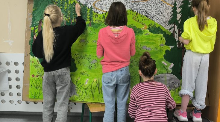 W ramach przygotowań uczniowie wraz z nauczycielką prowadzącą wykonali samodzielnie wszystkie dekoracje i kostiumy.